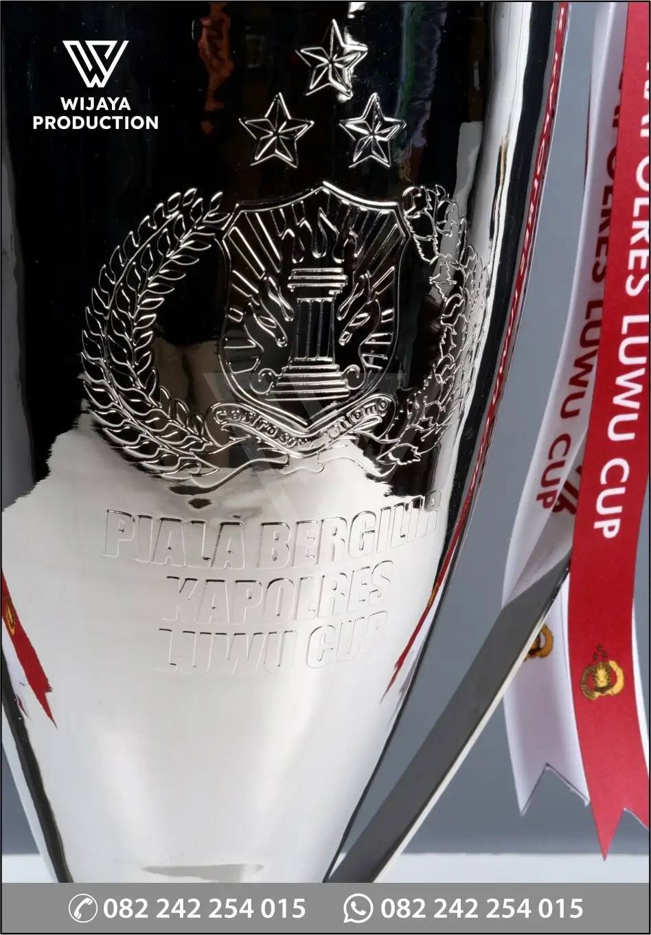 Anda memerlukan penghargaan untuk menunjukkan kemeriahan event Anda? Custom piala penghargaan untuk rayakan momen terbaik Anda. Sebagai referensi desain, kami tampilkan produk Piala Bergilir Kapolres Luwu Cup.