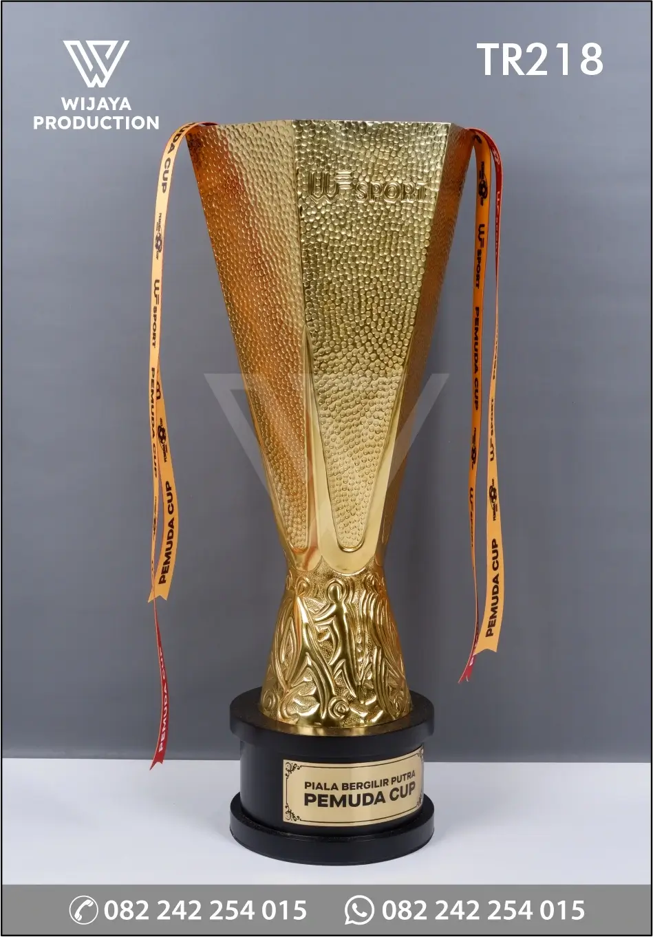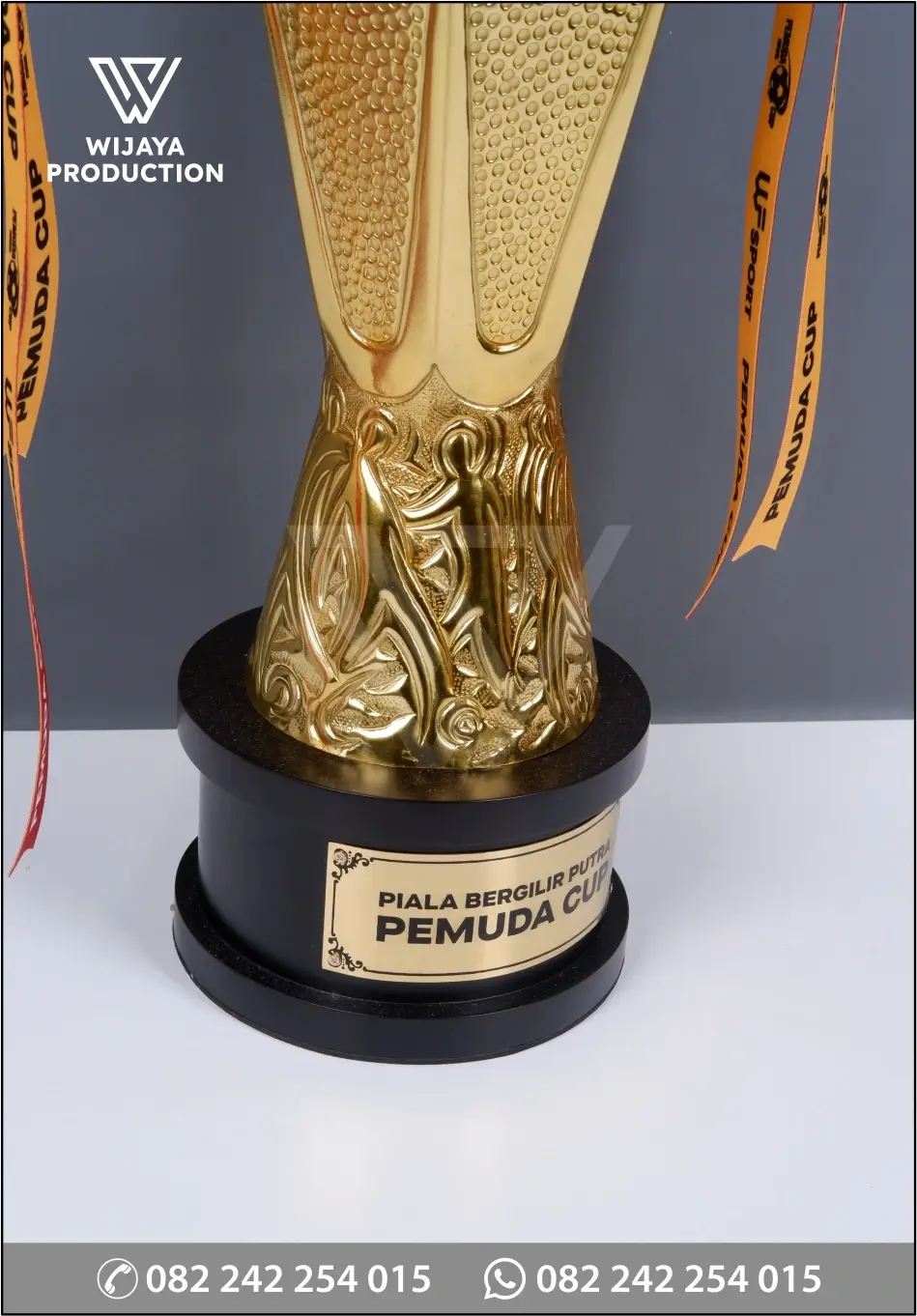 Anda memerlukan penghargaan untuk menunjukkan kemeriahan event Anda? Custom piala penghargaan untuk rayakan momen terbaik Anda. Sebagai referensi desain, kami tampilkan produk Piala Bergilir Putra Pemuda Cup.